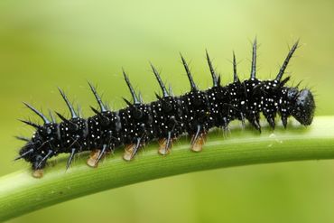 De rups van de dagpauwoog eet uitsluitend brandnetel